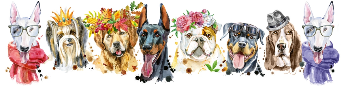 Plexisklo za kuchyňskou linku Portét psů - 240 x 60 cm