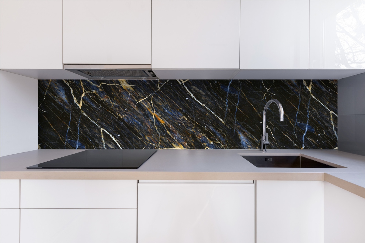 Plexisklo za kuchyňskou linku Textura tmavého mramoru - 240 x 60 cm
