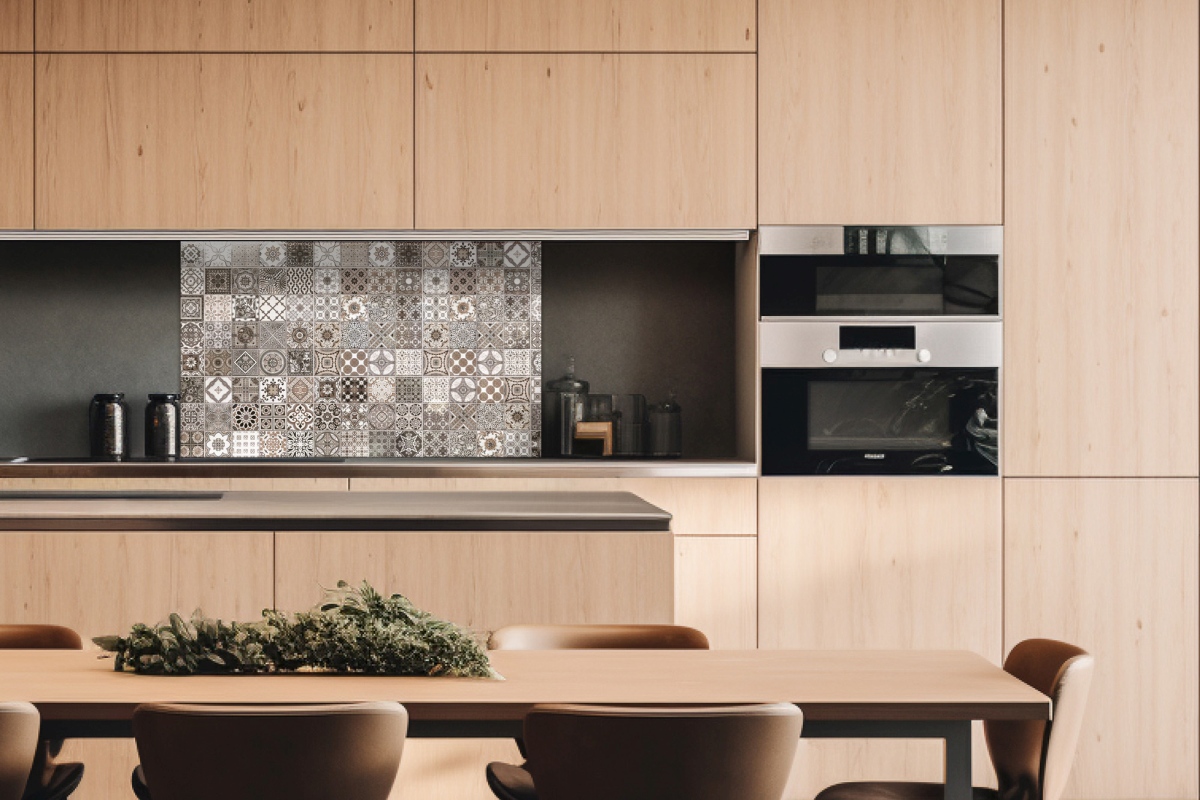 Plexisklo za kuchyňskou linku Vintage béžové kachličky - 100 x 60 cm