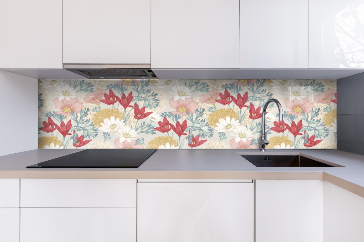 Plexisklo za kuchyňskou linku Vintage květinový vzor - 240 x 60 cm