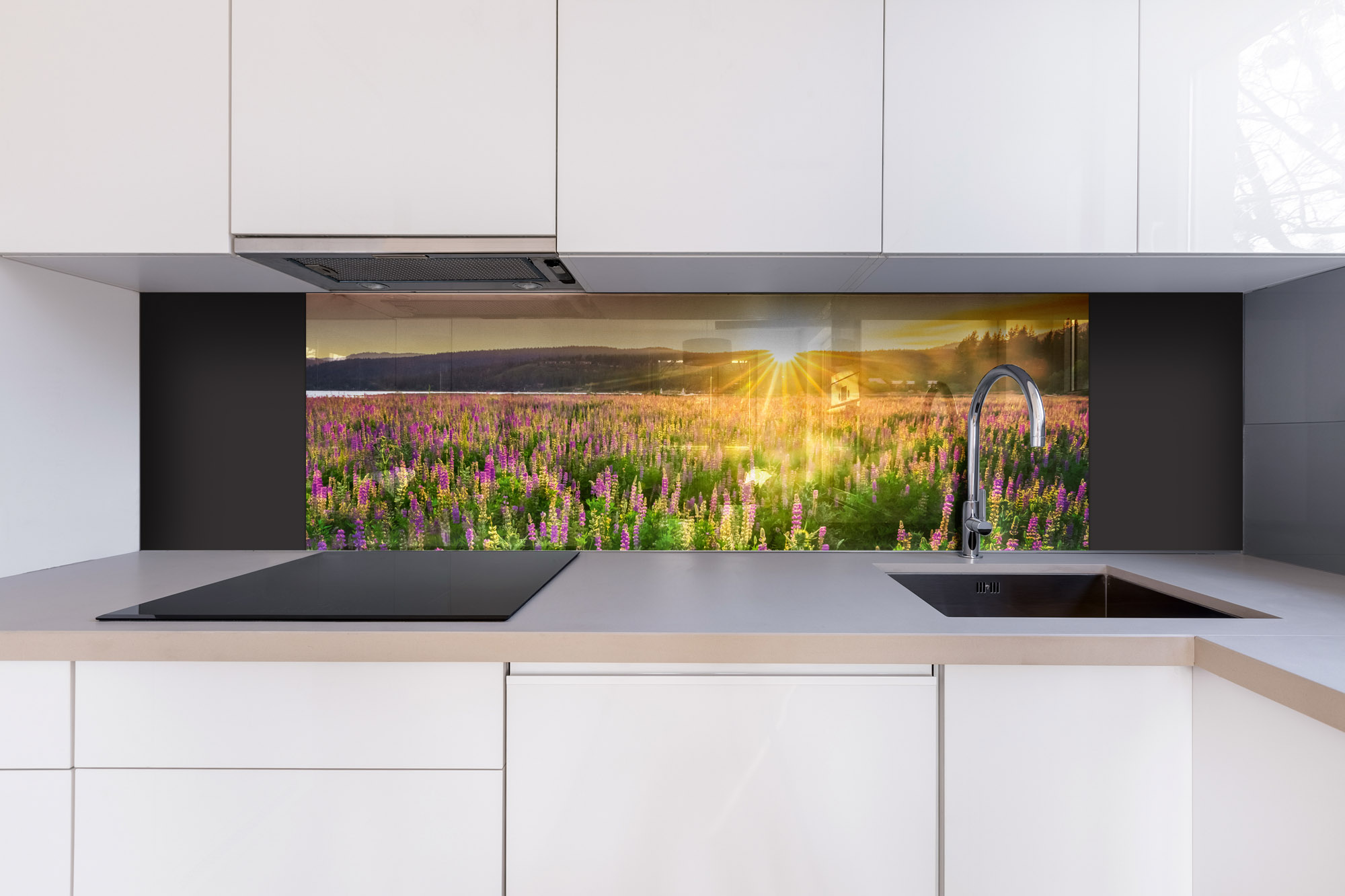 Plexisklo za kuchyňskou linku Západ slunce na louku - 180 x 60 cm