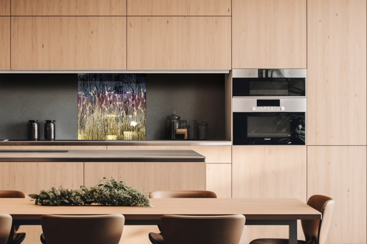 Plexisklo za kuchynskú linku Zimná trstina - 60 x 60 cm