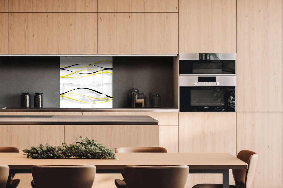 Plexisklo za kuchynskú linku Žlté vlny - 60 x 60 cm