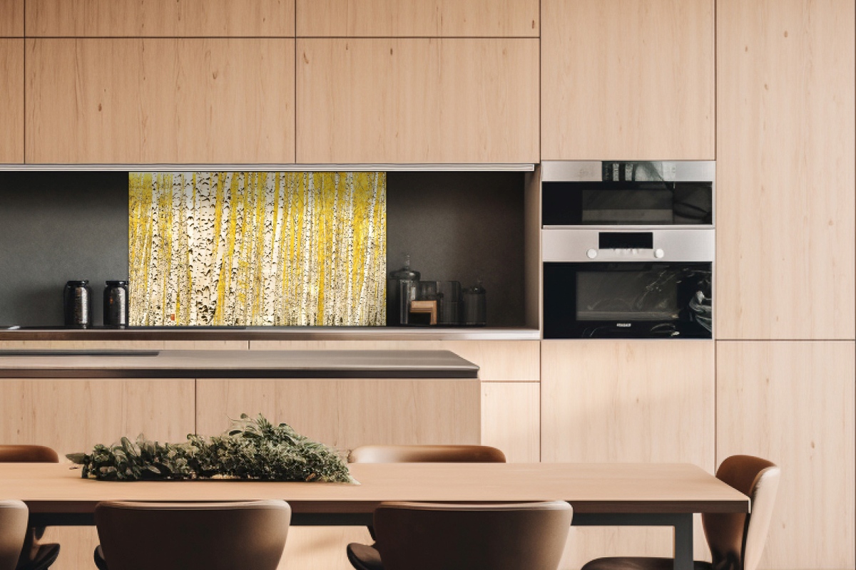 Plexisklo za kuchyňskou linku Žlutý březový háj - 100 x 60 cm