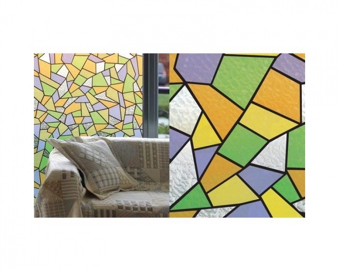 91-2215 Fólia na sklo FAREBNÉ ORNAMENTY - šírka 90 cm