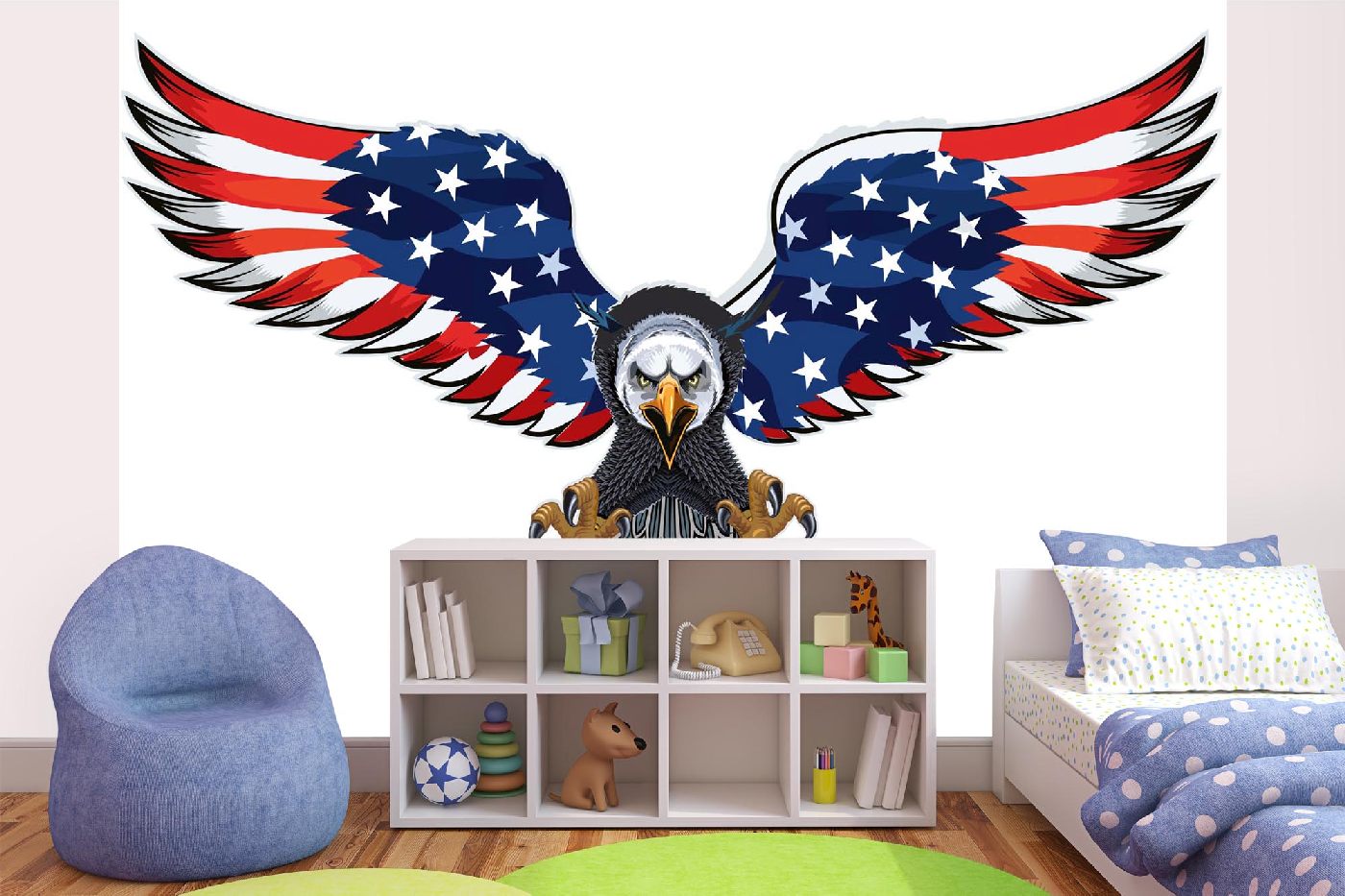Samolepiace vliesové fototapety Americký orol s vlajkou 375 x 250 cm