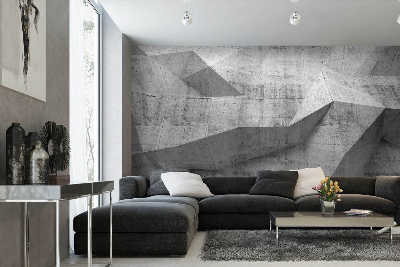 Samolepiace vliesové fototapety Betón 3D interiér 375 x 250 cm