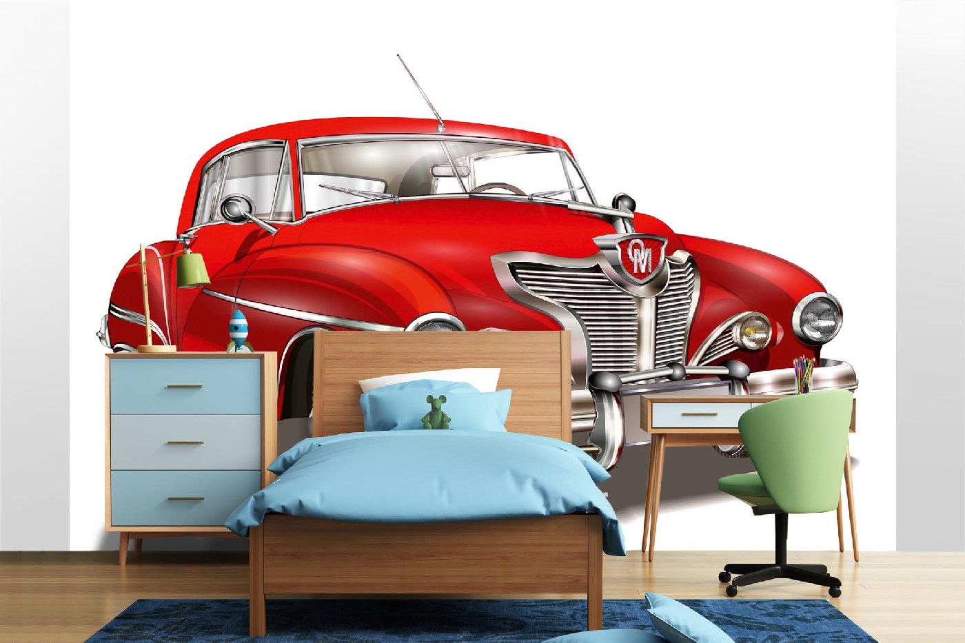 Samolepiace vliesové fototapety Červený retro automobil II. 375 x 250 cm