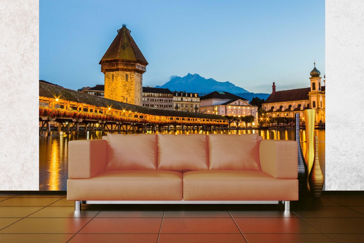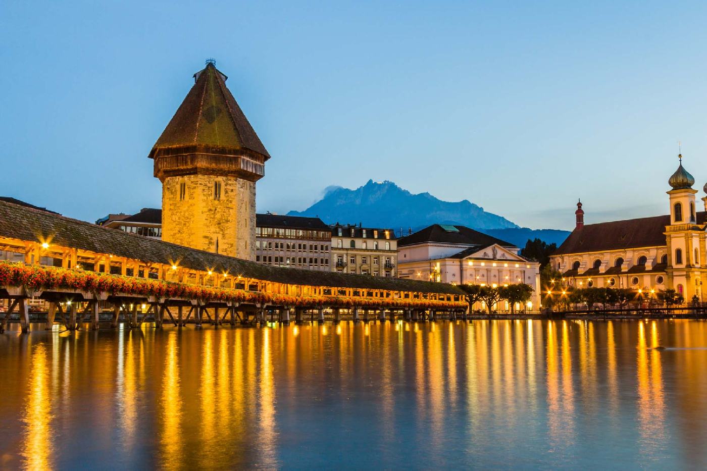 Samolepiace vliesové fototapety Kapellbrücke v noci 375 x 250 cm