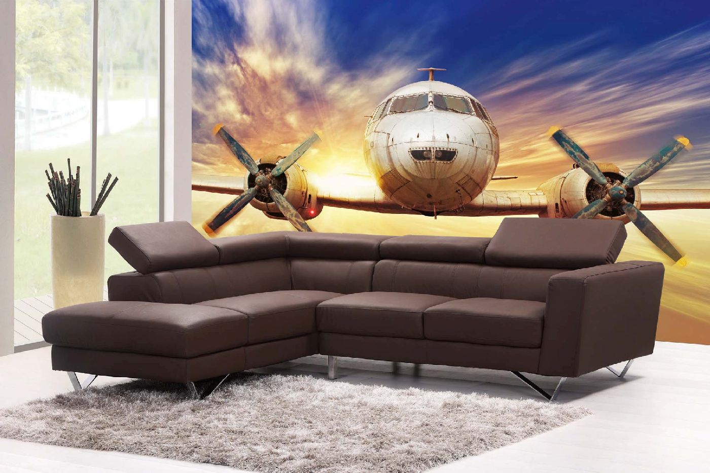 Samolepiace vliesové fototapety Lietadlo pri západe slnka 375 x 250 cm