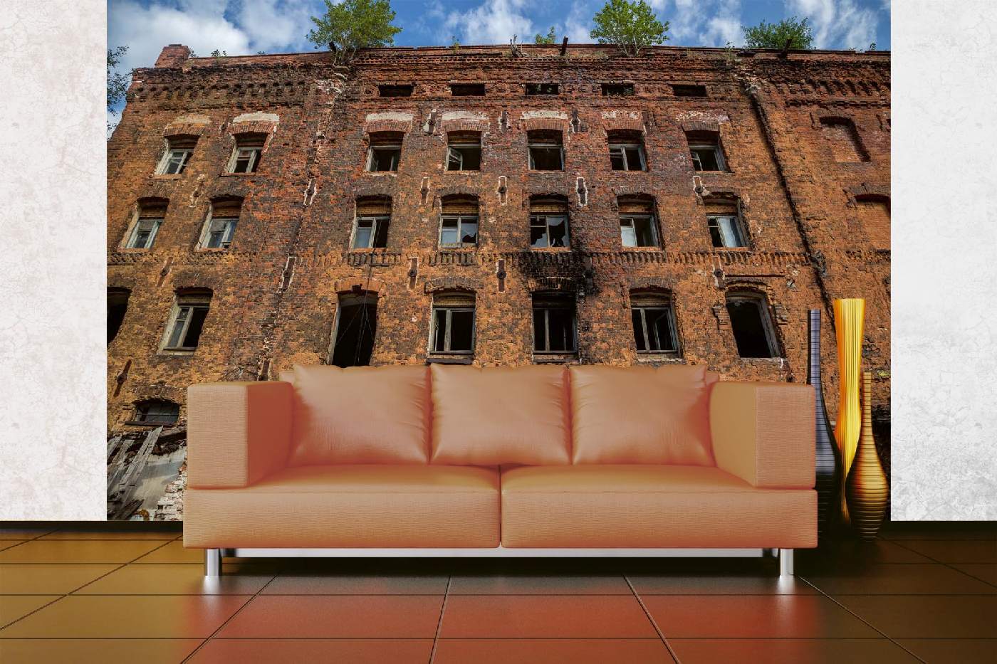Samolepiace vliesové fototapety Obhorená továreň 375 x 250 cm