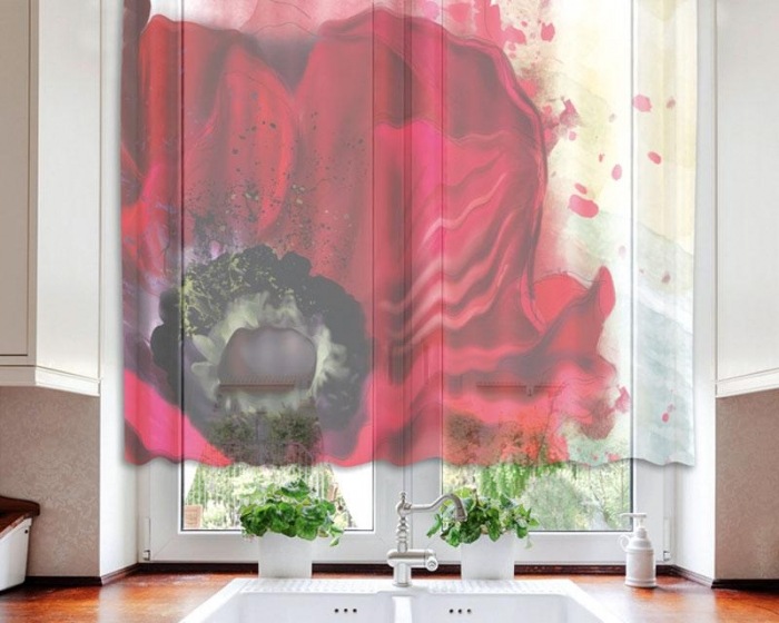 Hotové záclony do kuchyne DIMEX - fotozáclony Mak 140 x 120 cm