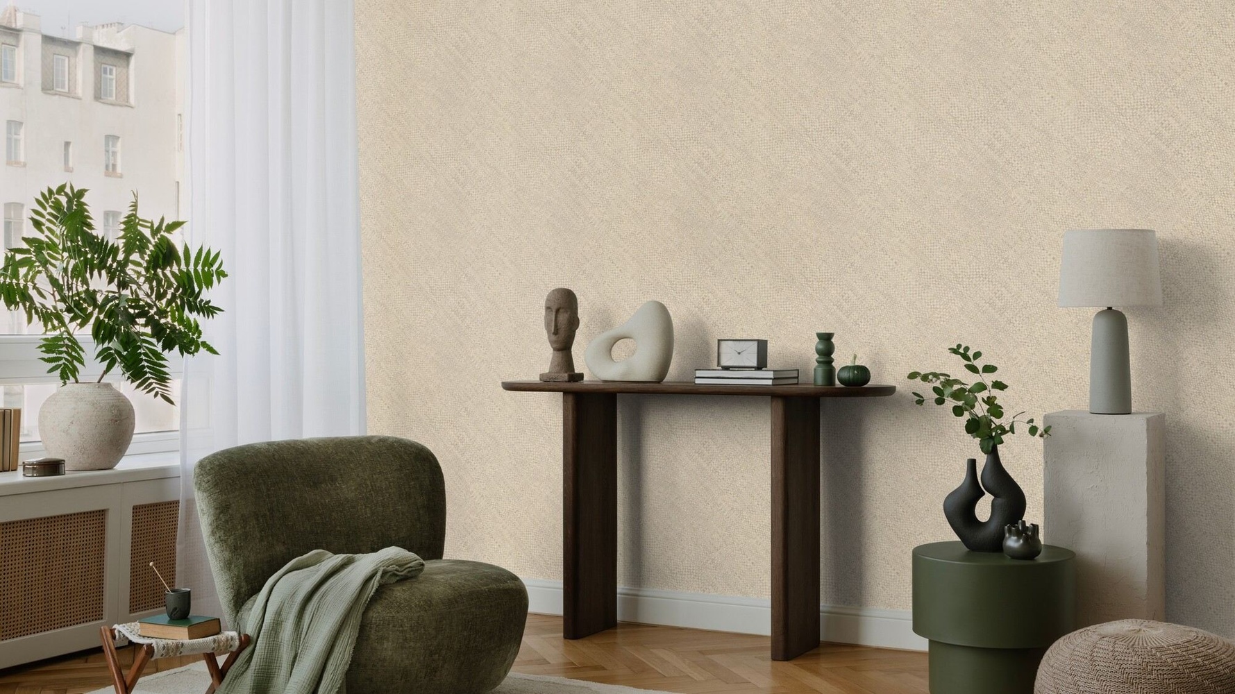 Tapeta je vyrobená z vliesového materiálu, teda z vláknitej buničiny, ktorá zaručuje pevnosť, umývateľnosť, stálofarebnosť tapety a predovšetkým jej dlhú životnosť. Tapety na stenu dokážu jednoducho zmeniť výzor Vašej miestnosti a dodať jej úplne novú atmoféru podľa vzoru, ktorý si vyberiete. Výhodou vliesovej tapety je ľahké lepenie aj jej odstránenie a dokonalá priedušnosť.