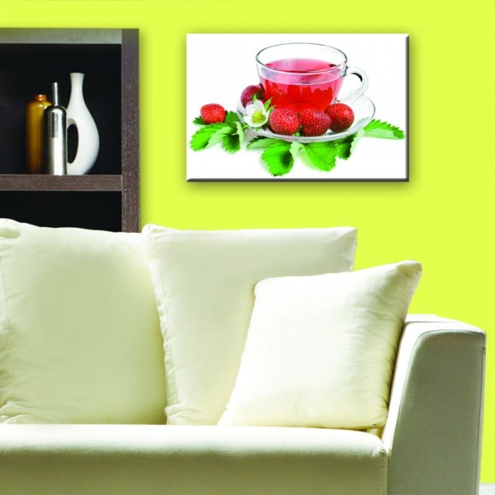 Obraz na skle - Šálka ​​jahodového čaju 45 x 30 cm