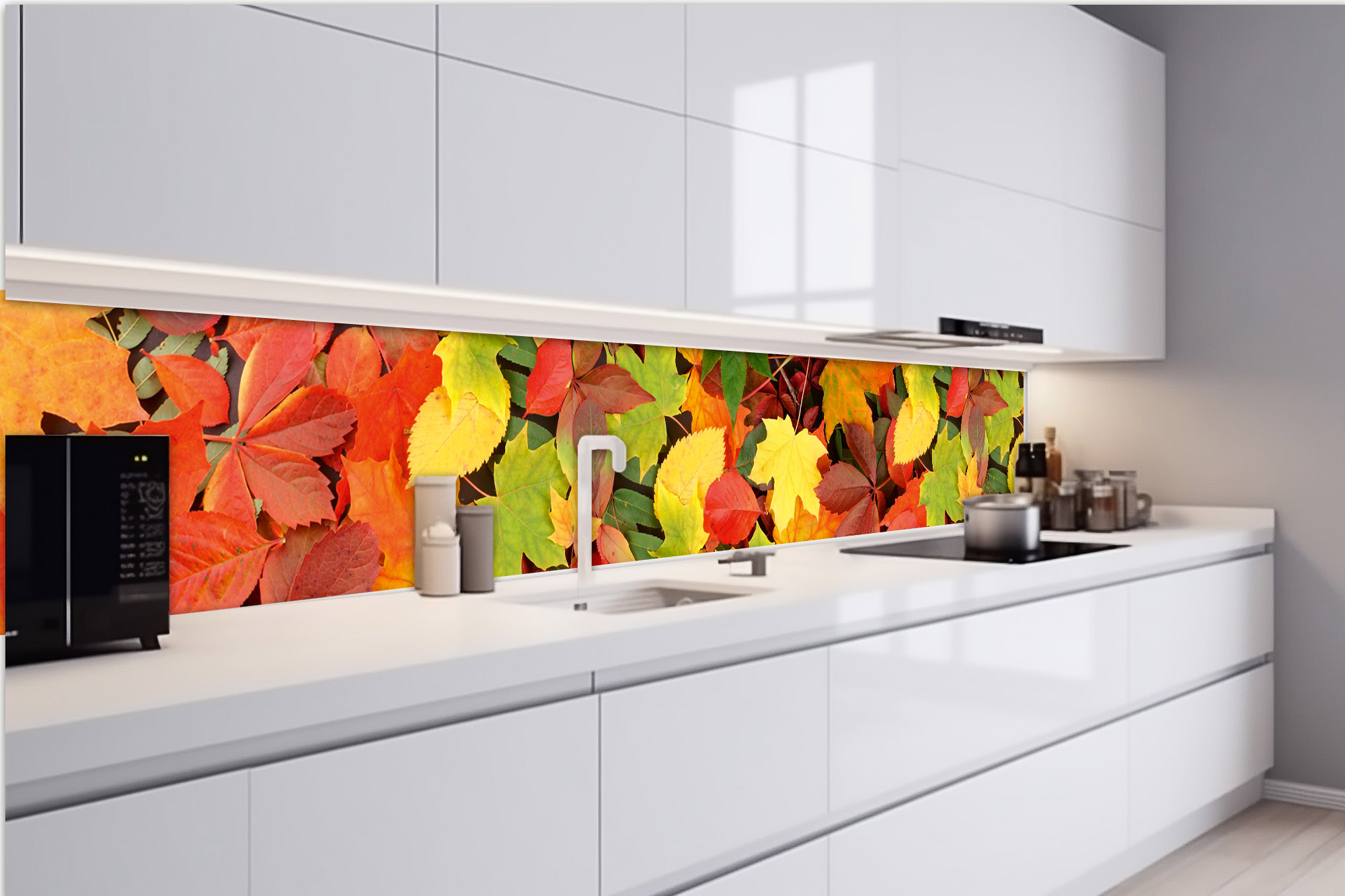Samolepiace fototapety do kuchyne nie je vhodné lepiť za sporák a iný zdroj tepla. Fototapeta by mala byť od zdroja tepla vo vzdialenosti 25 cm alebo môžete fototapetu ochrániť ochranným sklom. Vysoké teploty budú mať negatívny vplyv na kvalitu fototapety.