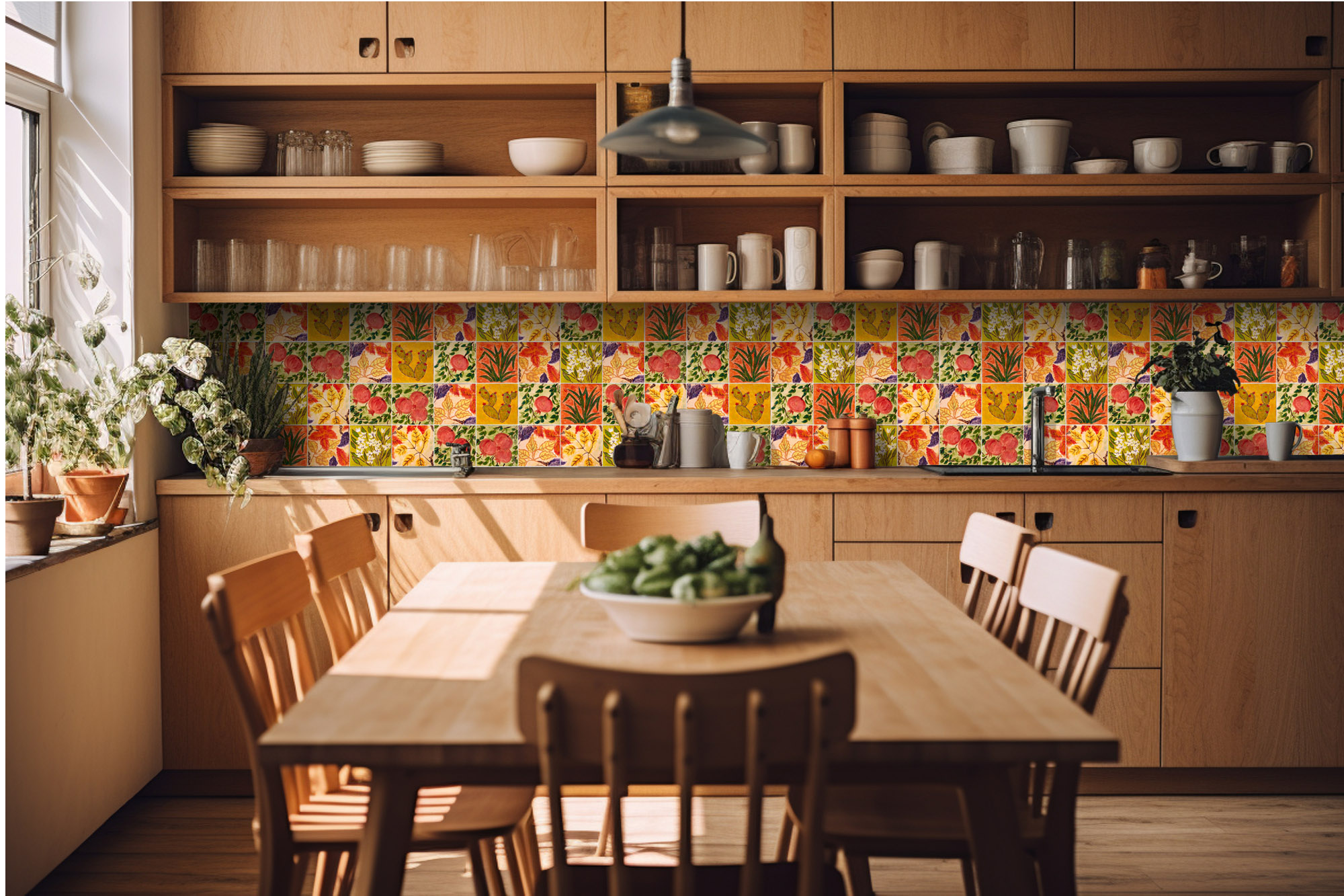 Fototapeta do kuchyne - Maľované kachličky 420 x 60 cm