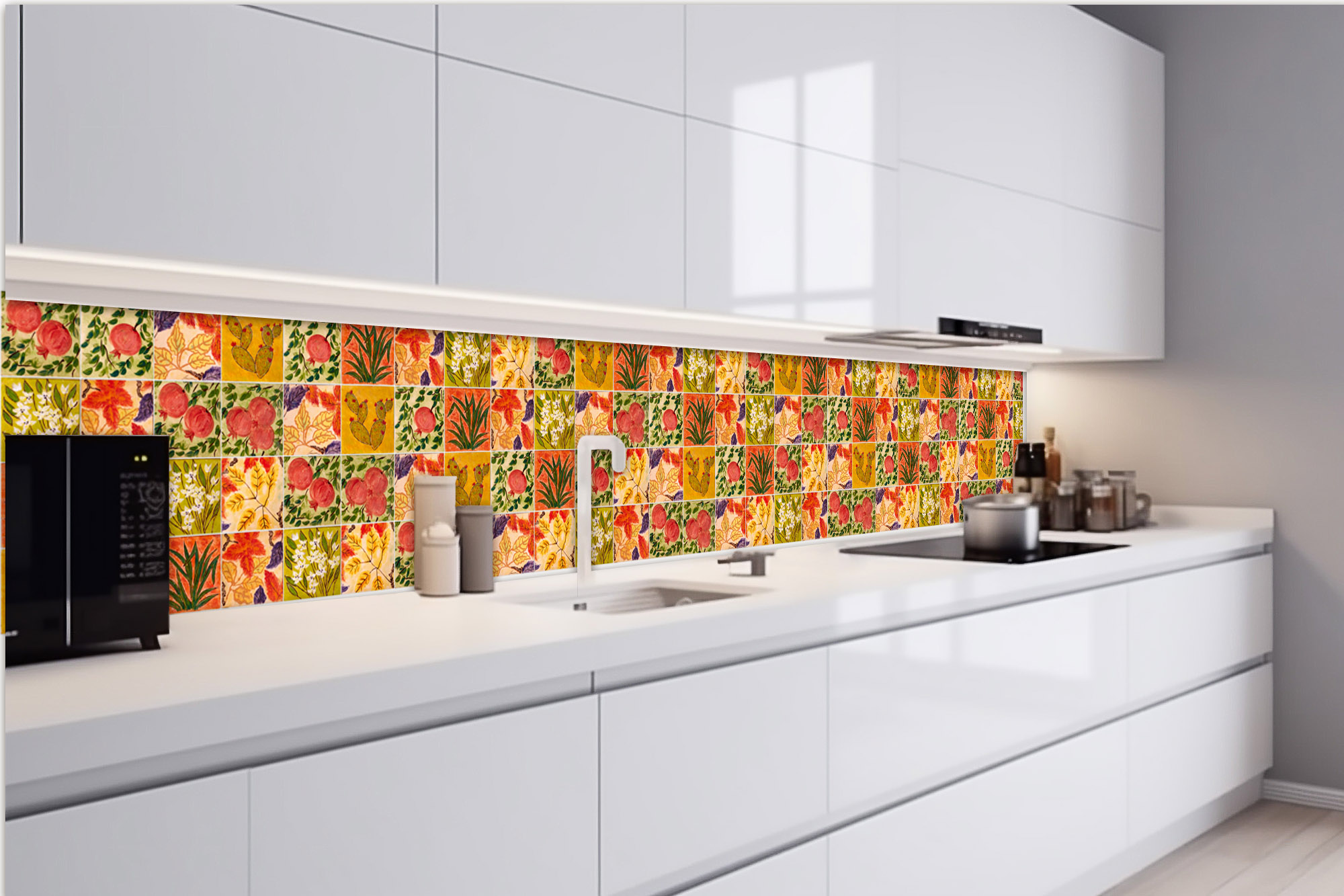 Samolepiace fototapety do kuchyne nie je vhodné lepiť za sporák a iný zdroj tepla. Fototapeta by mala byť od zdroja tepla vo vzdialenosti 25 cm alebo môžete fototapetu ochrániť ochranným sklom. Vysoké teploty budú mať negatívny vplyv na kvalitu fototapety.