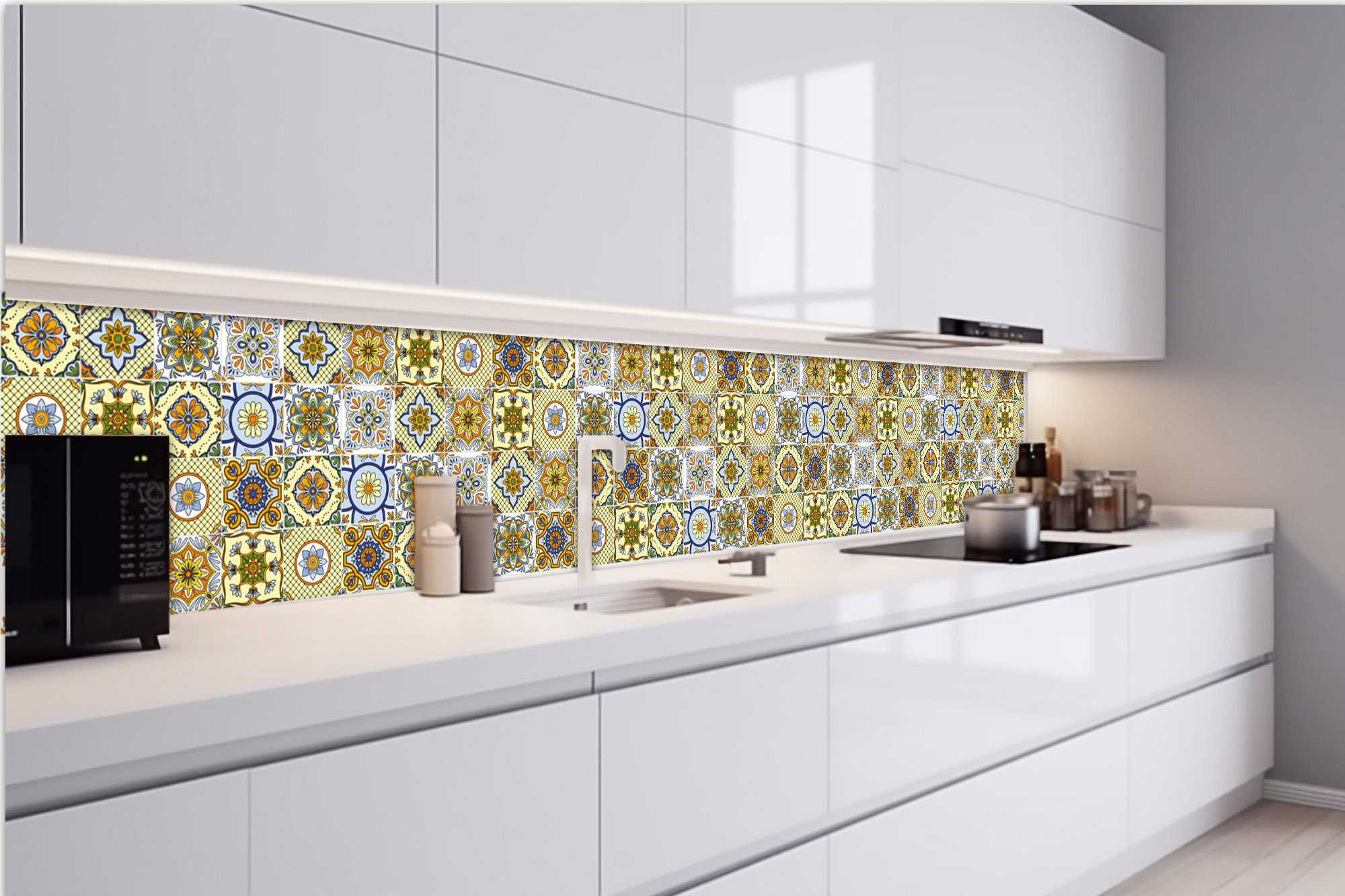 Samolepiace fototapety do kuchyne nie je vhodné lepiť za sporák a iný zdroj tepla. Fototapeta by mala byť od zdroja tepla vo vzdialenosti 25 cm alebo môžete fototapetu ochrániť ochranným sklom. Vysoké teploty budú mať negatívny vplyv na kvalitu fototapety.