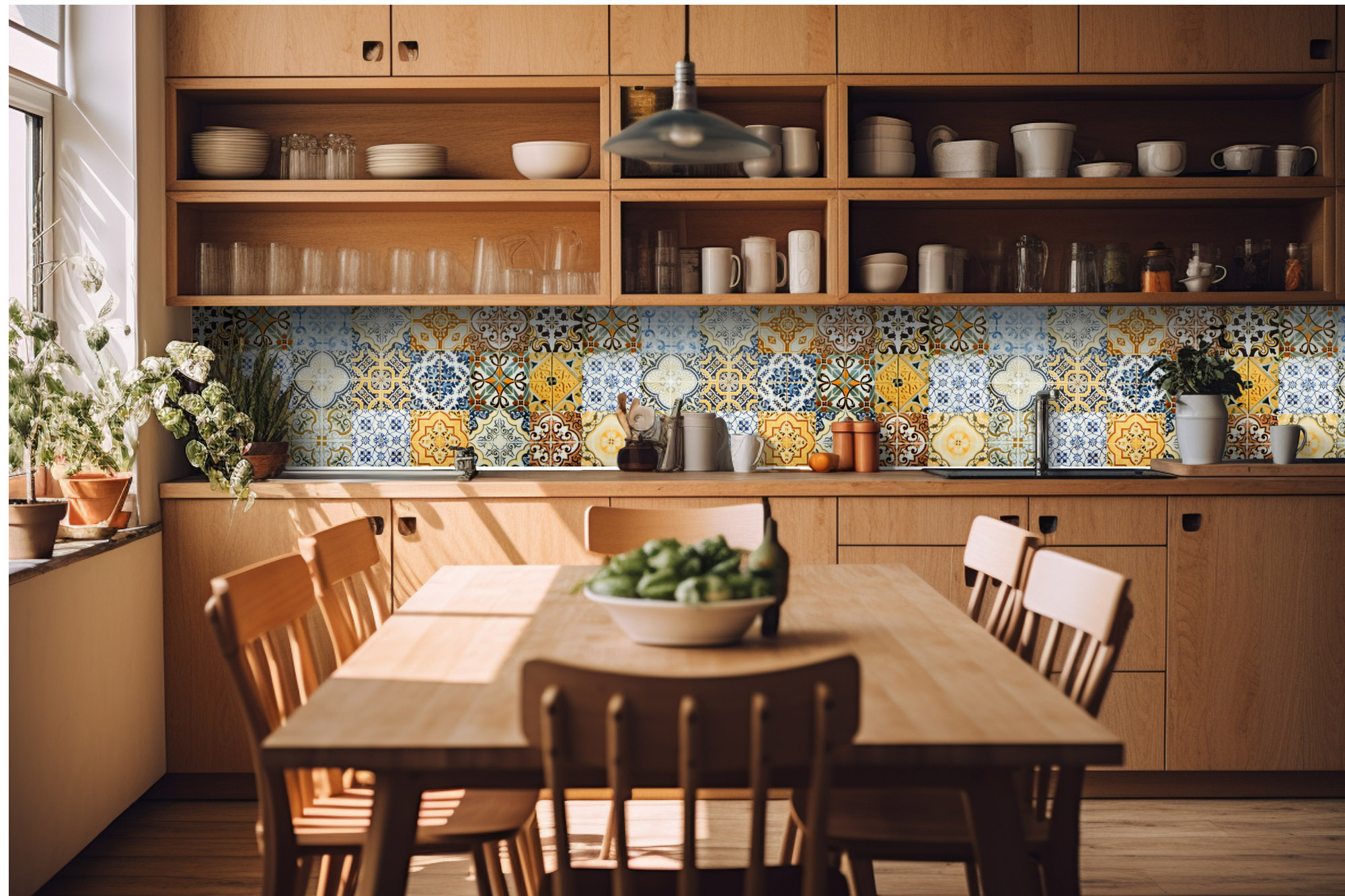 Fototapeta do kuchyne - Vintage farebné kachličky 420 x 60 cm