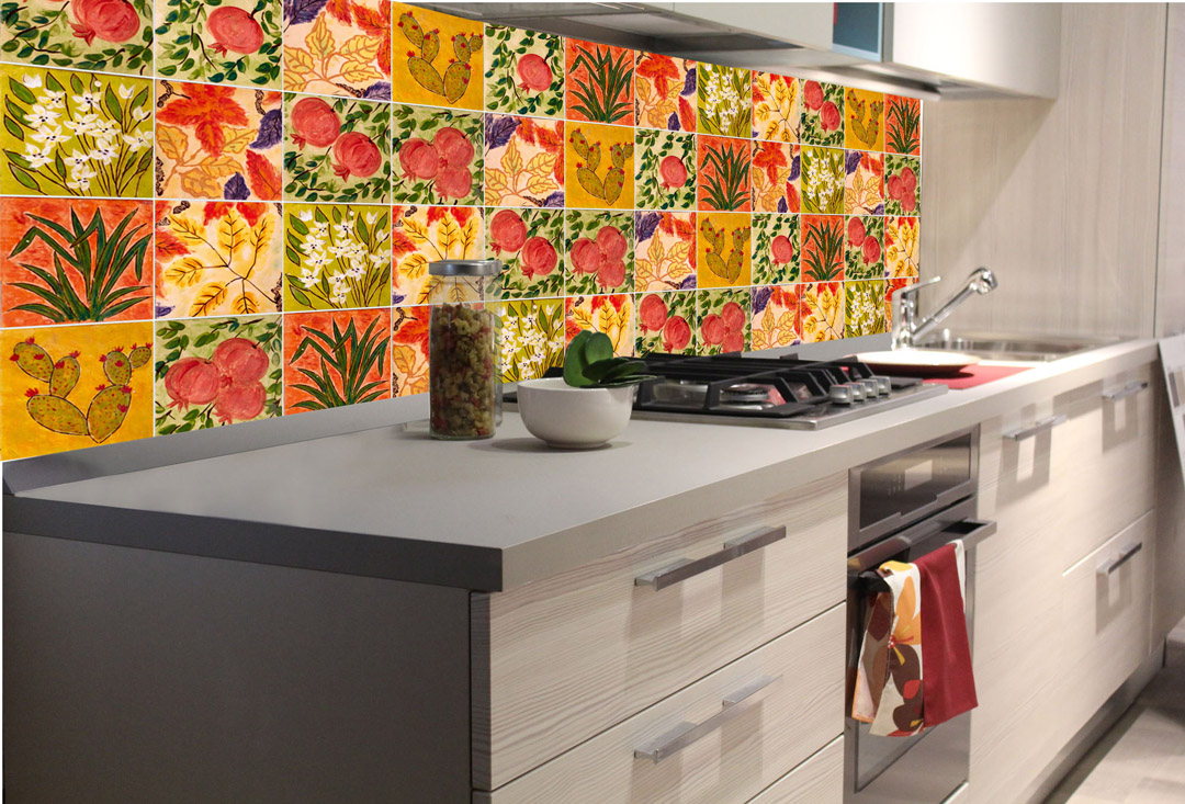 Fototapeta do kuchyne - Maľované dlaždice 180 x 60 cm