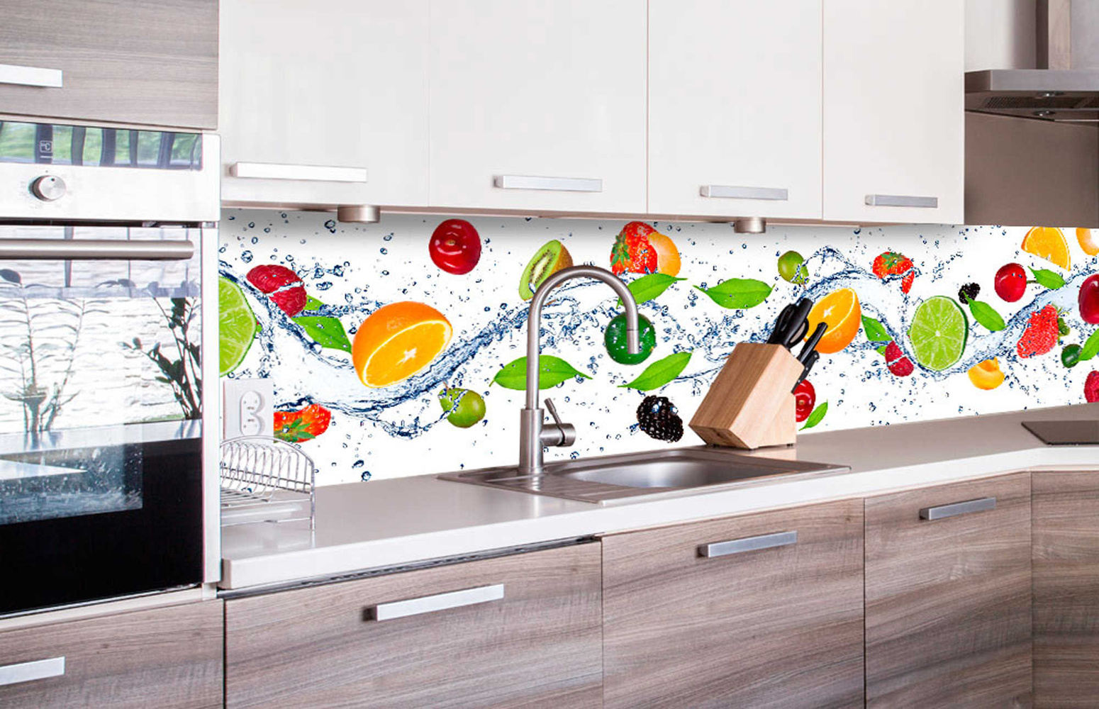 Samolepiace fototapety do kuchyne nie je vhodné lepiť za sporák a iný zdroj tepla. Fototapeta by mala byť od zdroja tepla vo vzdialenosti 25 cm alebo môžete fototapetu ochrániť ochranným sklom. Vysoké teploty budú mať negatívny vplyv na kvalitu fototapety.