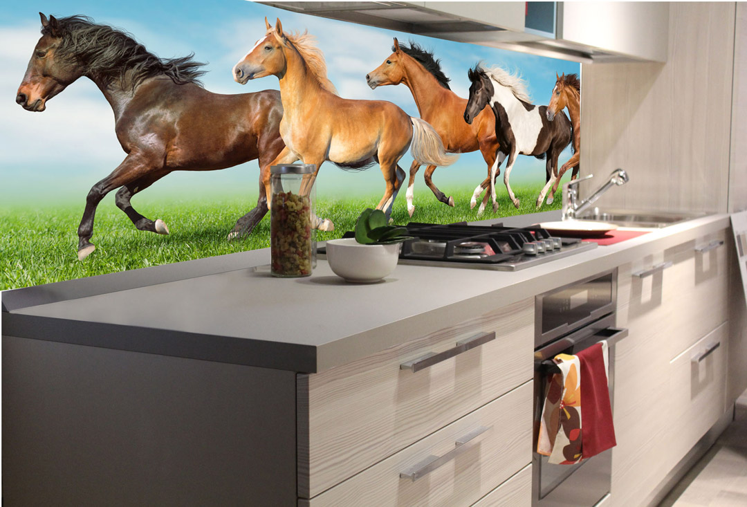 Fototapeta do kuchyne - Stádo koní 180 x 60 cm