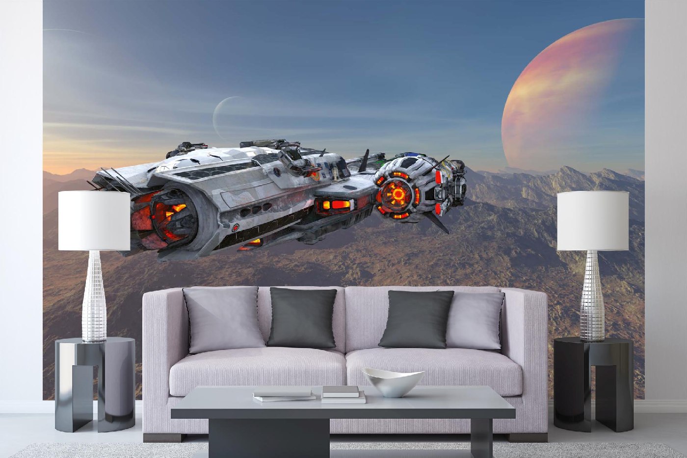 Vliesová fototapeta Kozmická loď pri západe slnka 375 x 250 cm