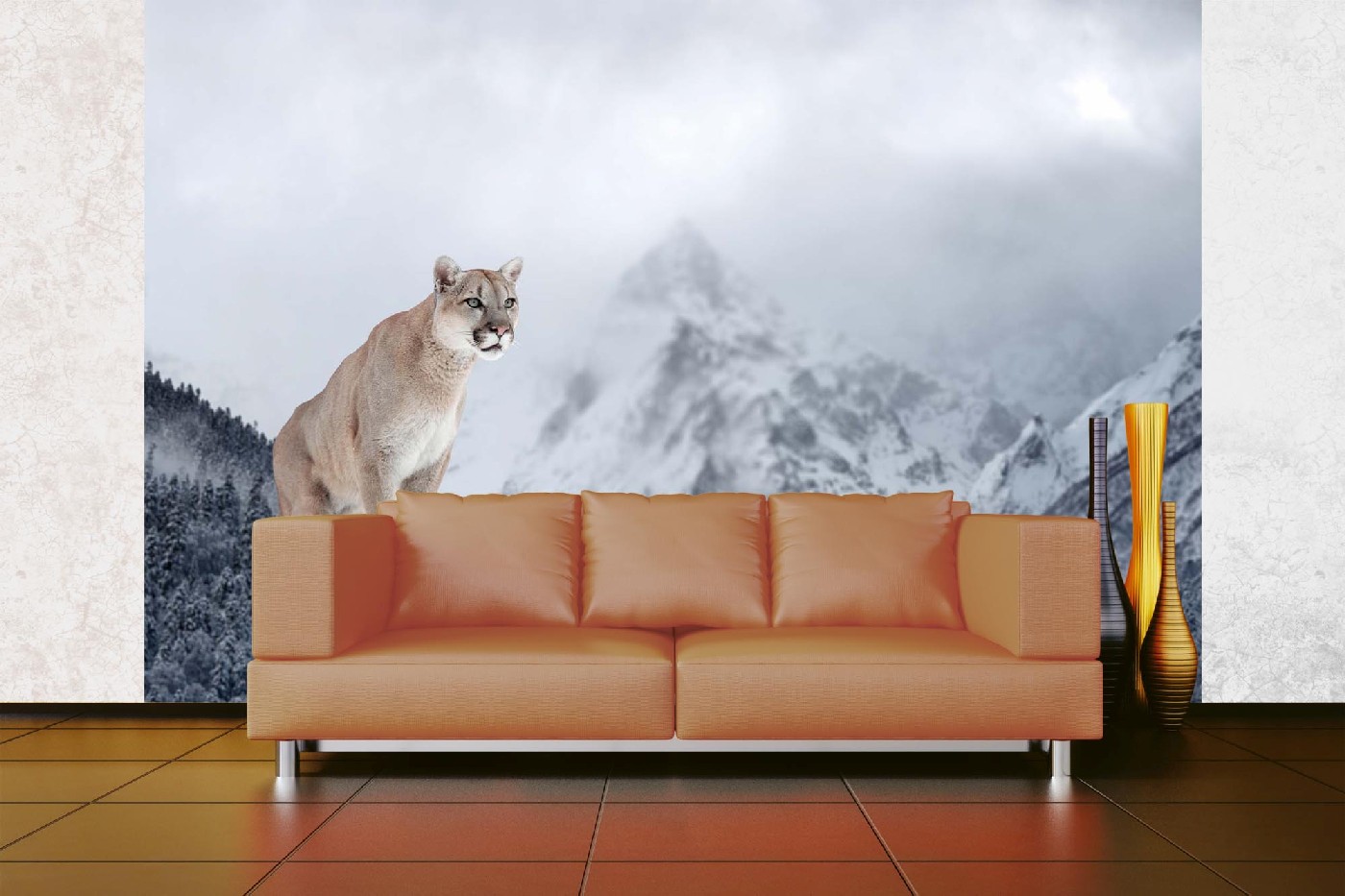 Vliesová fototapeta Puma v horách 375 x 250 cm