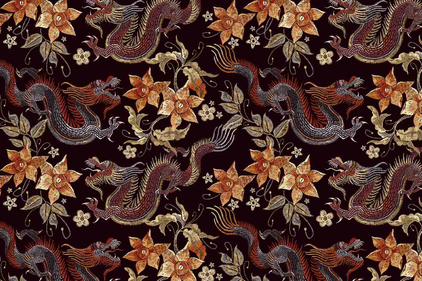 Vliesová fototapeta Vyšívaní draci 375 x 250 cm