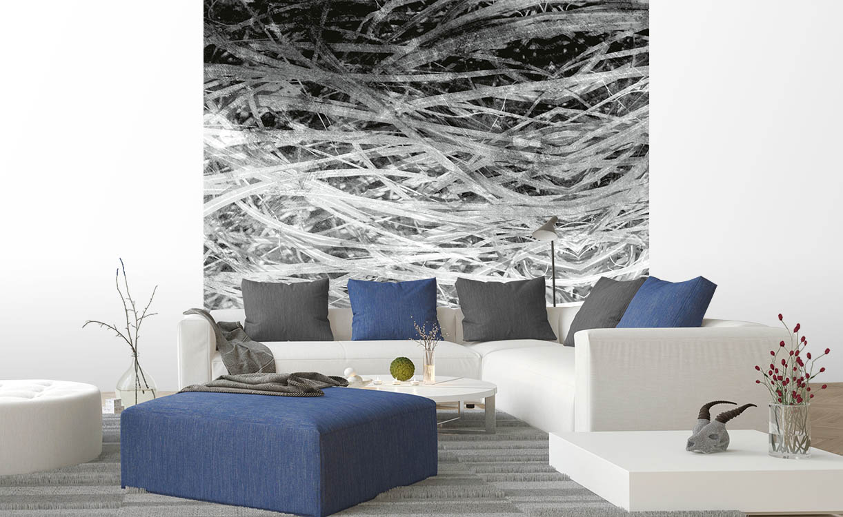 Fototapetu vyhlaďte smerom od stredu ku krajom tapetovacou kefou alebo prítlačným valčekom, aby ste zabránili vzniku vzduchových bublín. Zvyšky lepidla odstráňte pokiaľ možno ihneď pomocou morskej huby.