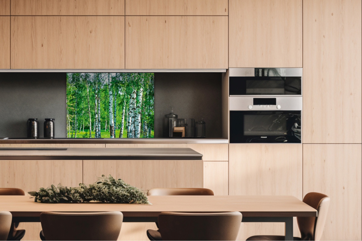Dibond obkladová doska za kuchynskú linku Brezový háj - 80 x 60 cm