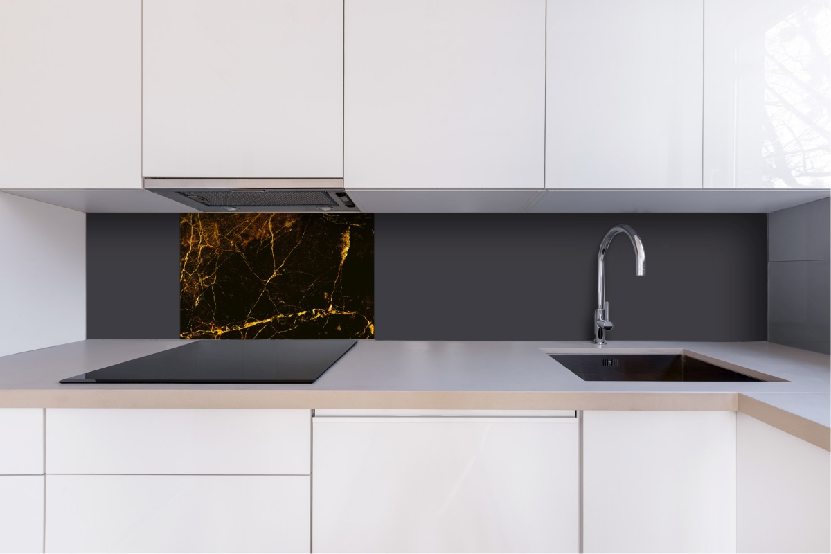 Dibond obkladová deska za kuchyňskou linku Čiernozlatý mramor - 60 x 40 cm cm