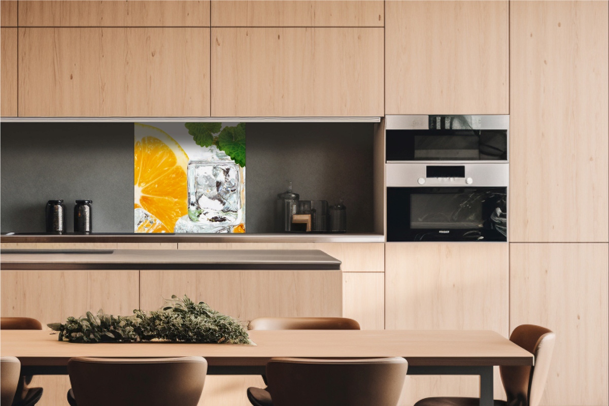 Dibond obkladová deska za kuchyňskou linku Citrón a ľad - 60 x 60 cm cm