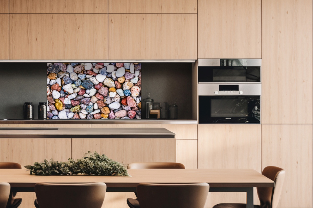Dibond obkladová doska za kuchynskú linku Farebné okruhliaky - 100 x 60 cm