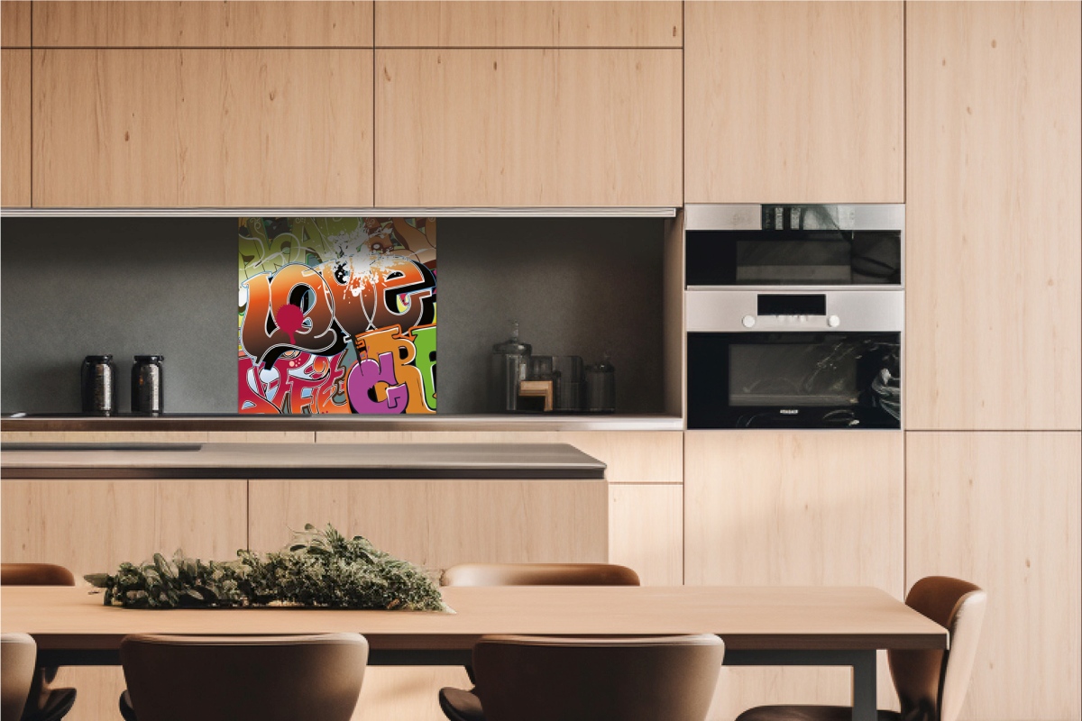 Dibond obkladová deska za kuchyňskou linku Graffiti - 60 x 60 cm cm