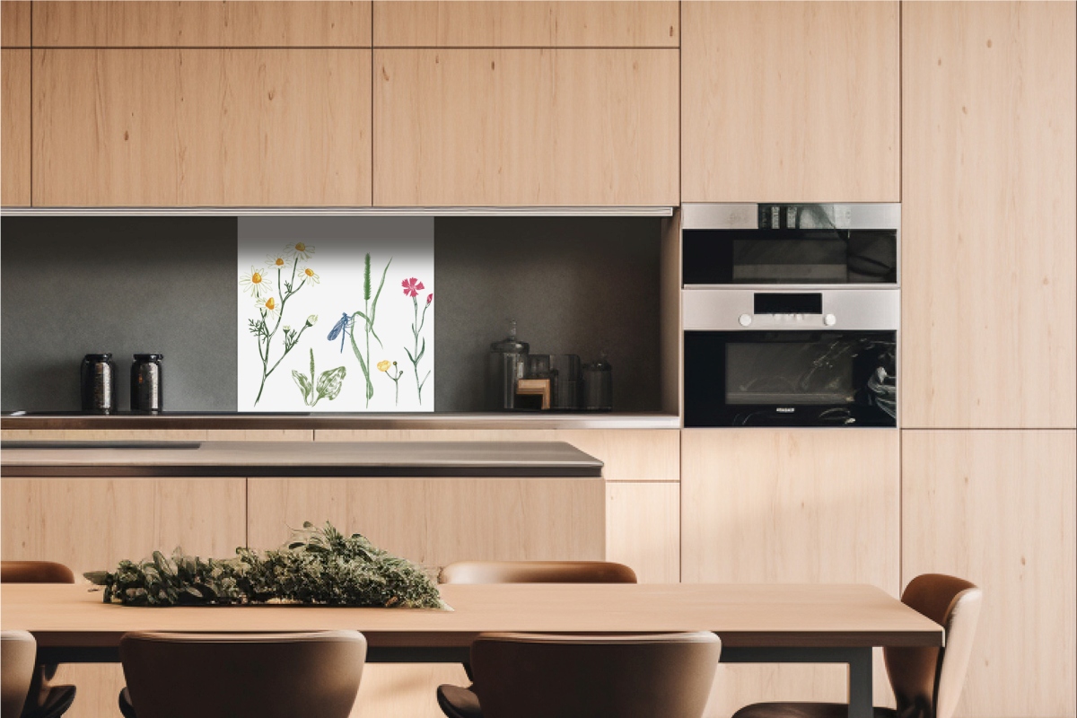 Dibond obkladová deska za kuchyňskou linku Kresba z herbára - 60 x 60 cm cm