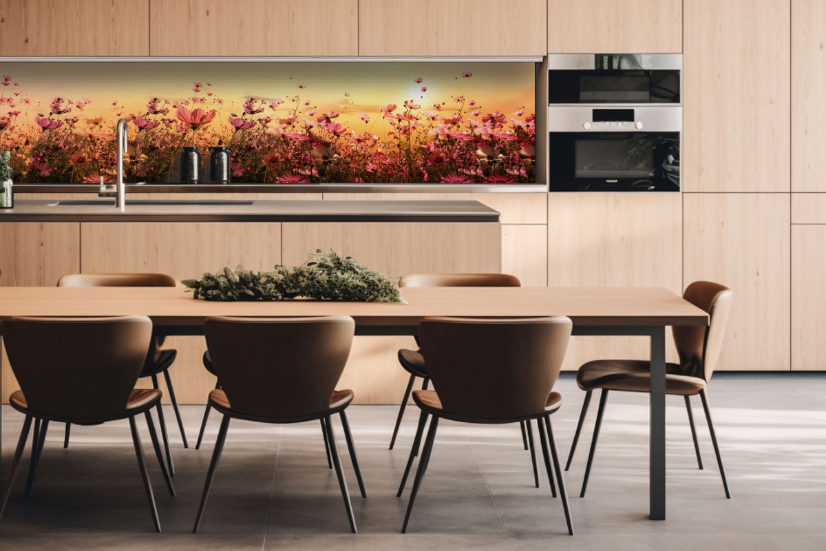 Dibond obkladová doska za kuchynskú linku Kvetinové pole - 260 x 60 cm