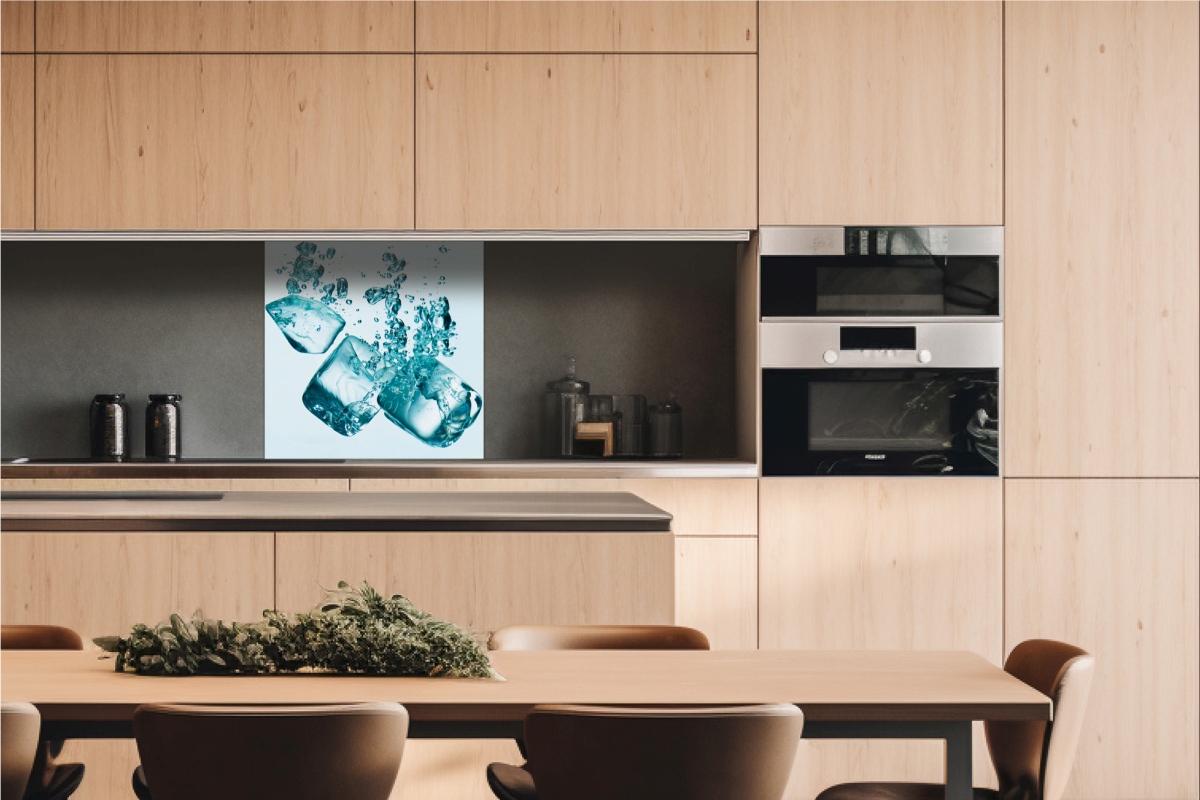 Dibond obkladová deska za kuchyňskou linku Ľadové kocky - 60 x 60 cm cm