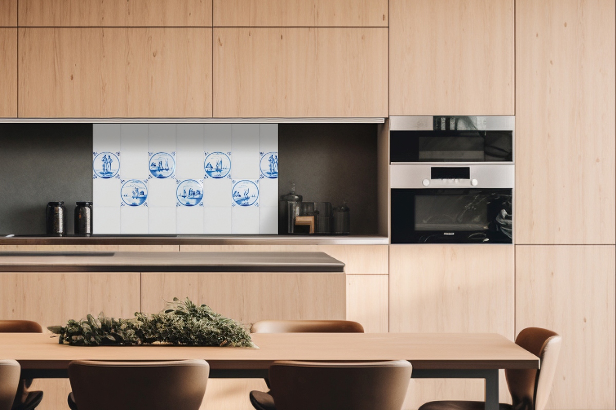 Dibond obkladová doska za kuchynskú linku Modré kachličky - 100 x 60 cm