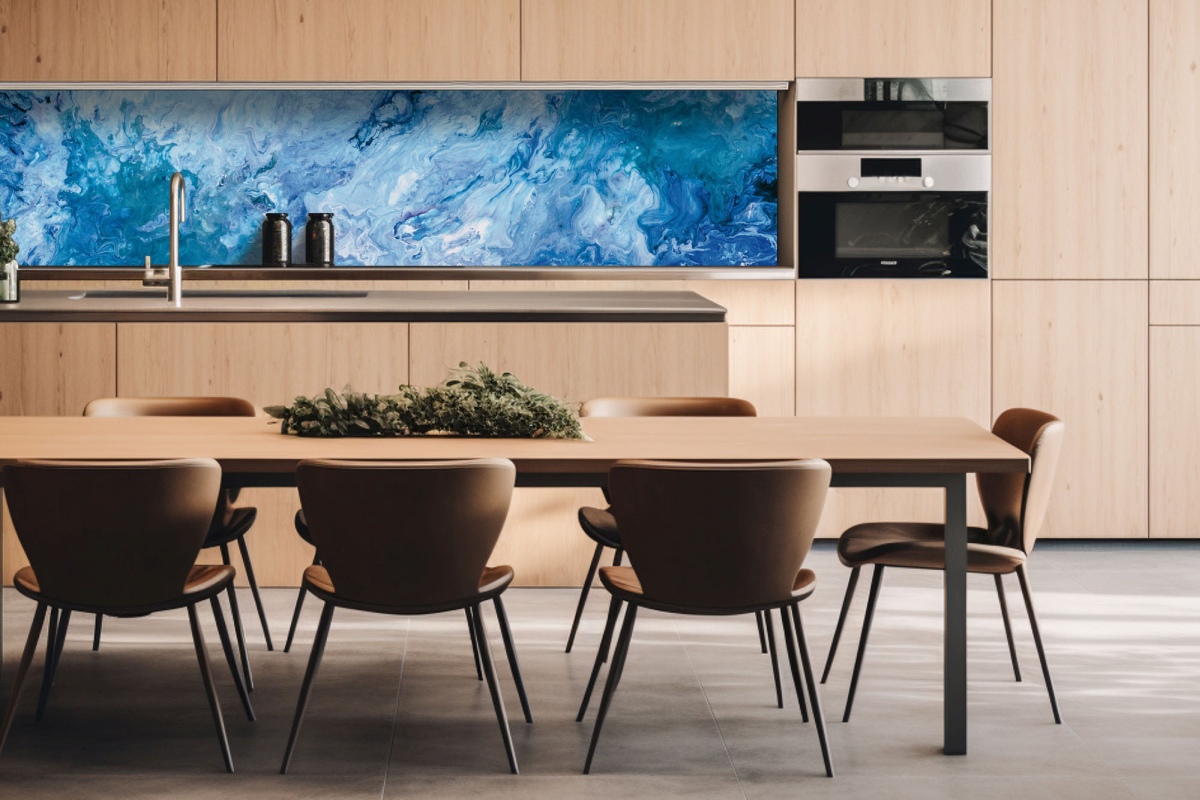 Dibond obkladová doska za kuchynskú linku Modrý abstrakt - 260 x 60 cm