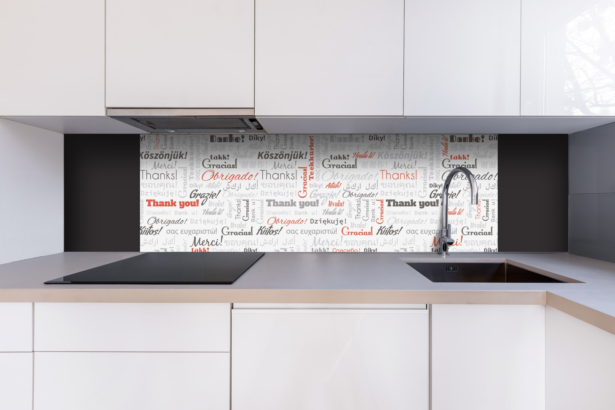 Dibond obkladová doska za kuchynskú linku Nápisy ďakujem - 180 x 60 cm