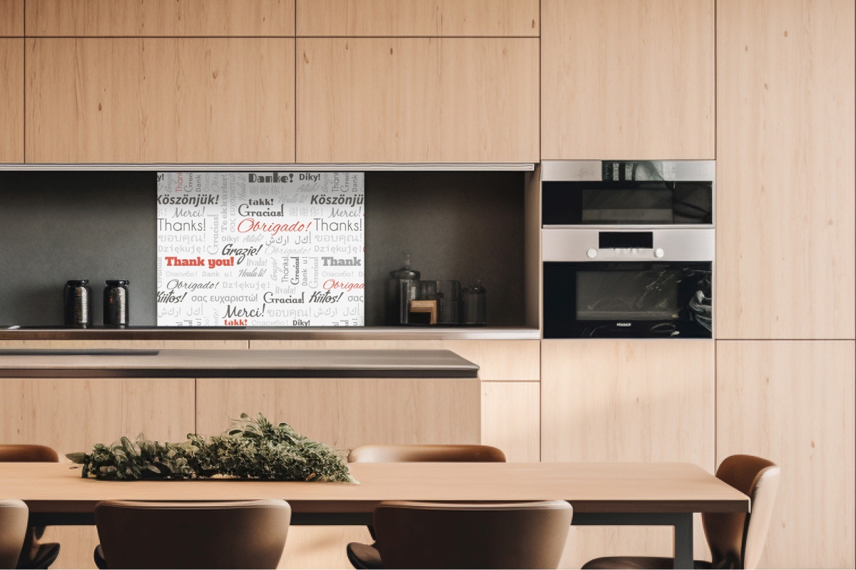 Dibond obkladová doska za kuchynskú linku Nápisy ďakujem - 80 x 60 cm