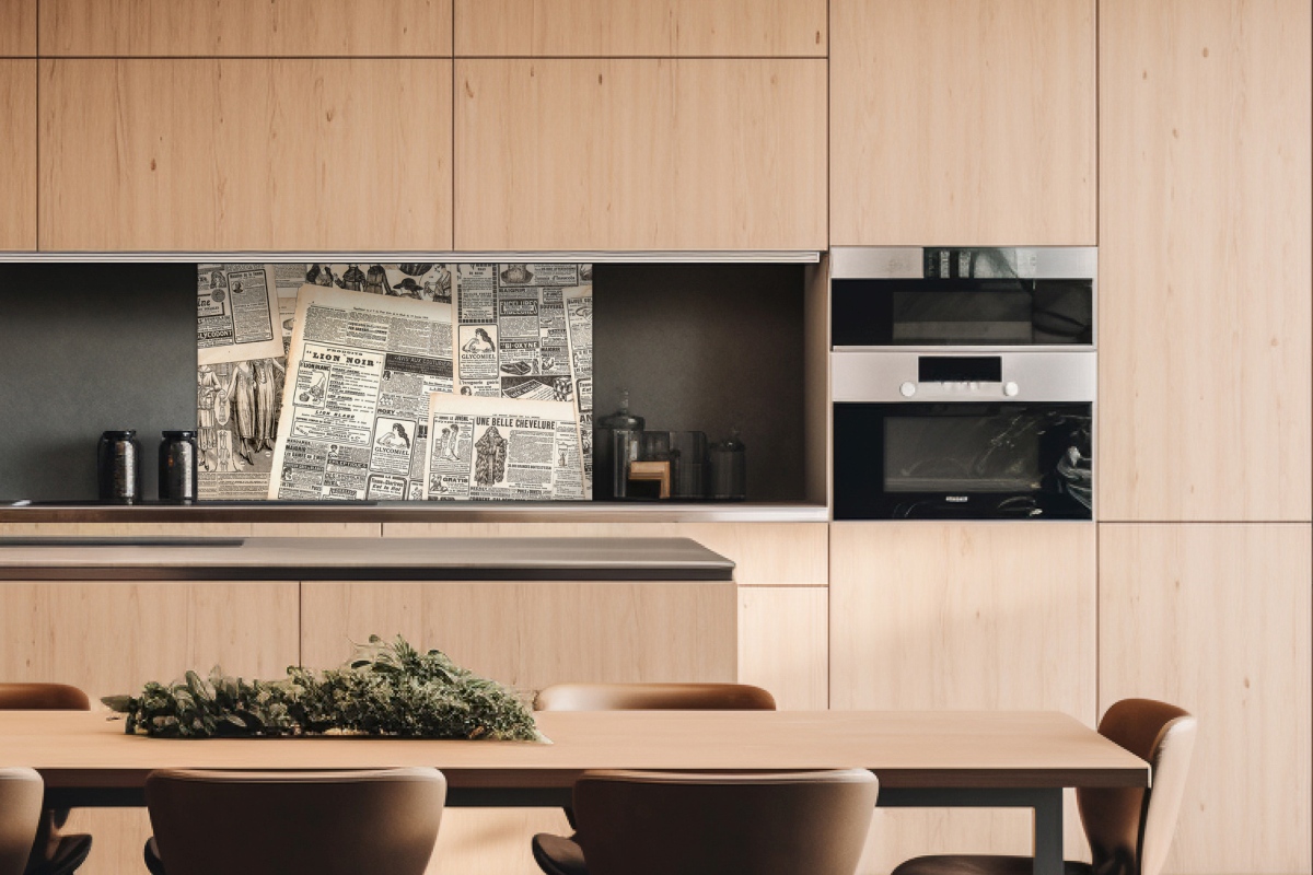 Dibond obkladová doska za kuchynskú linku Novinové plátky - 100 x 60 cm