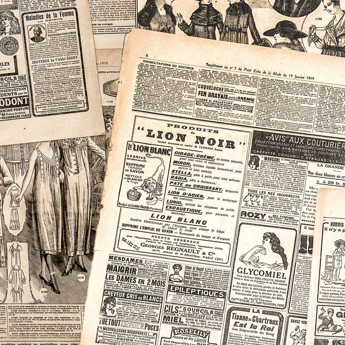 Dibond obkladová deska za kuchyňskou linku Novinové plátky - 60 x 60 cm cm