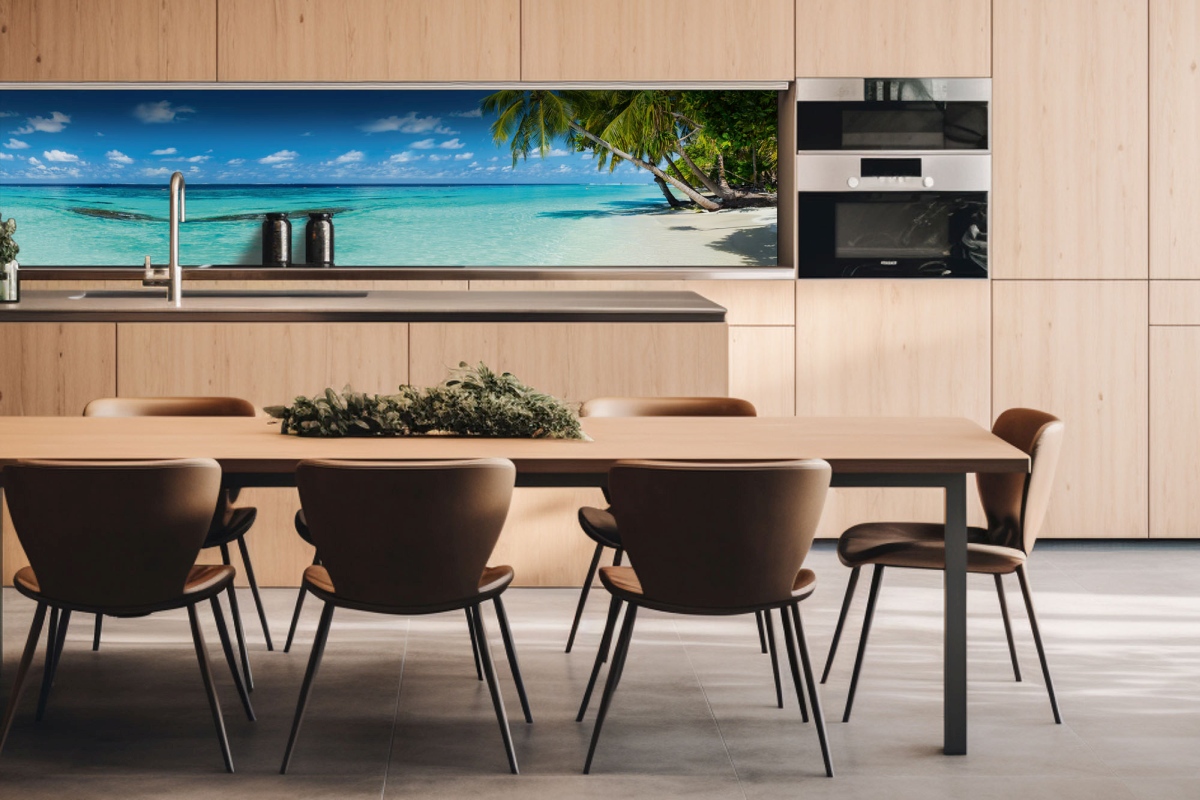 Dibond obkladová doska za kuchynskú linku Pláž v raji - 260 x 60 cm