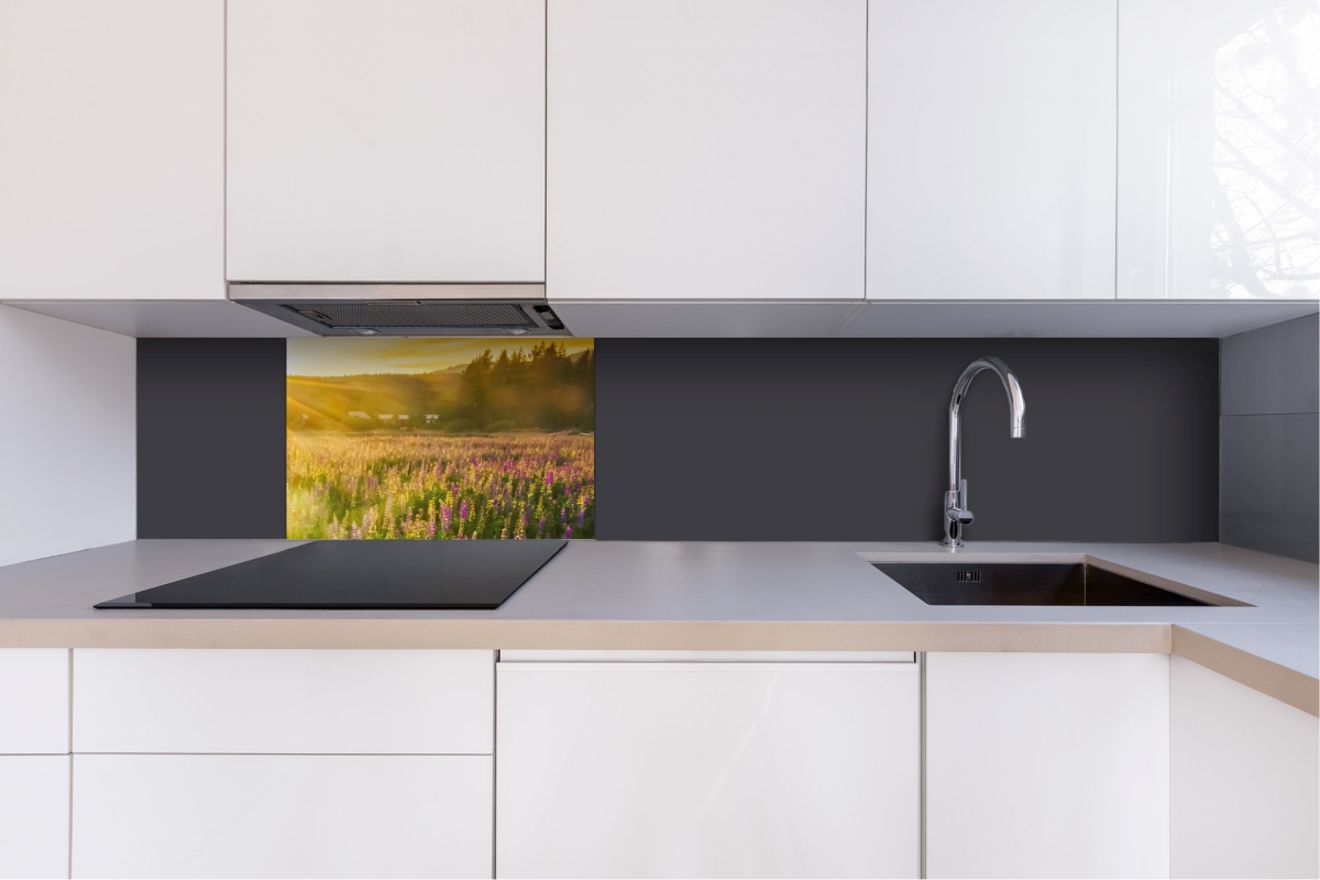 Dibond obkladová deska za kuchyňskou linku Slnečné lúče nad lúkou - 60 x 40 cm cm
