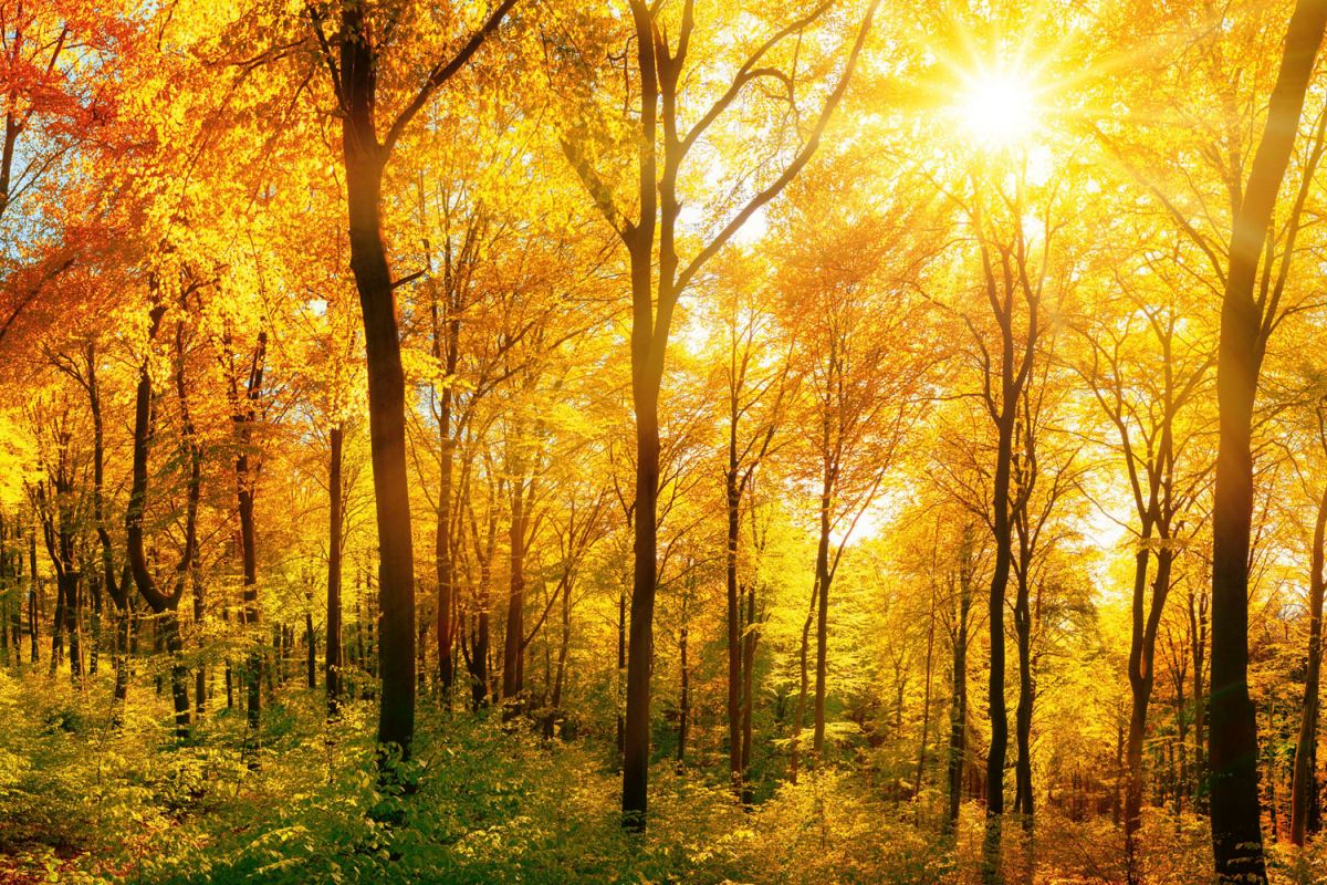Dibond obkladová deska za kuchyňskou linku Slnečný les - 60 x 40 cm cm