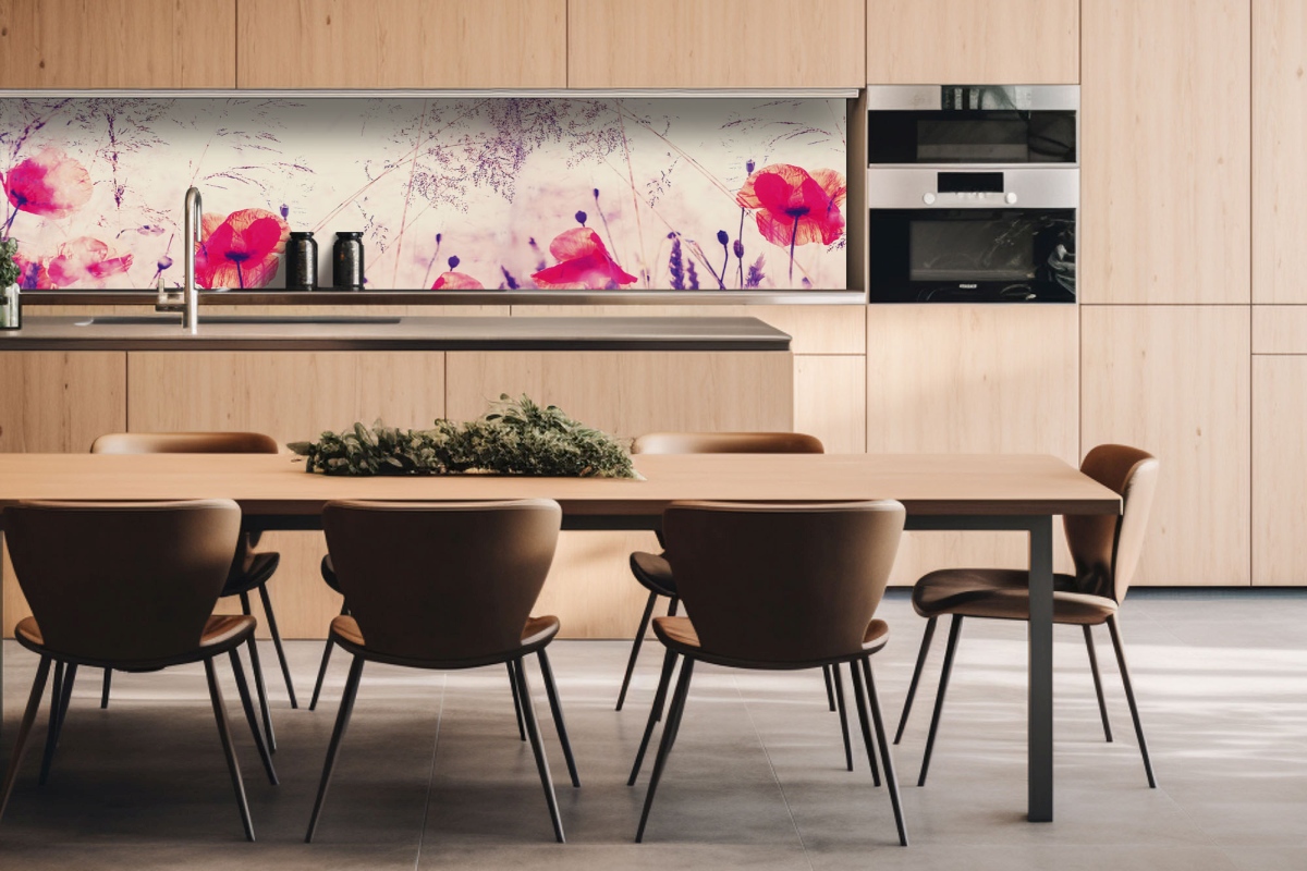 Dibond obkladová doska za kuchynskú linku Vintage vlčí mak - 260 x 60 cm