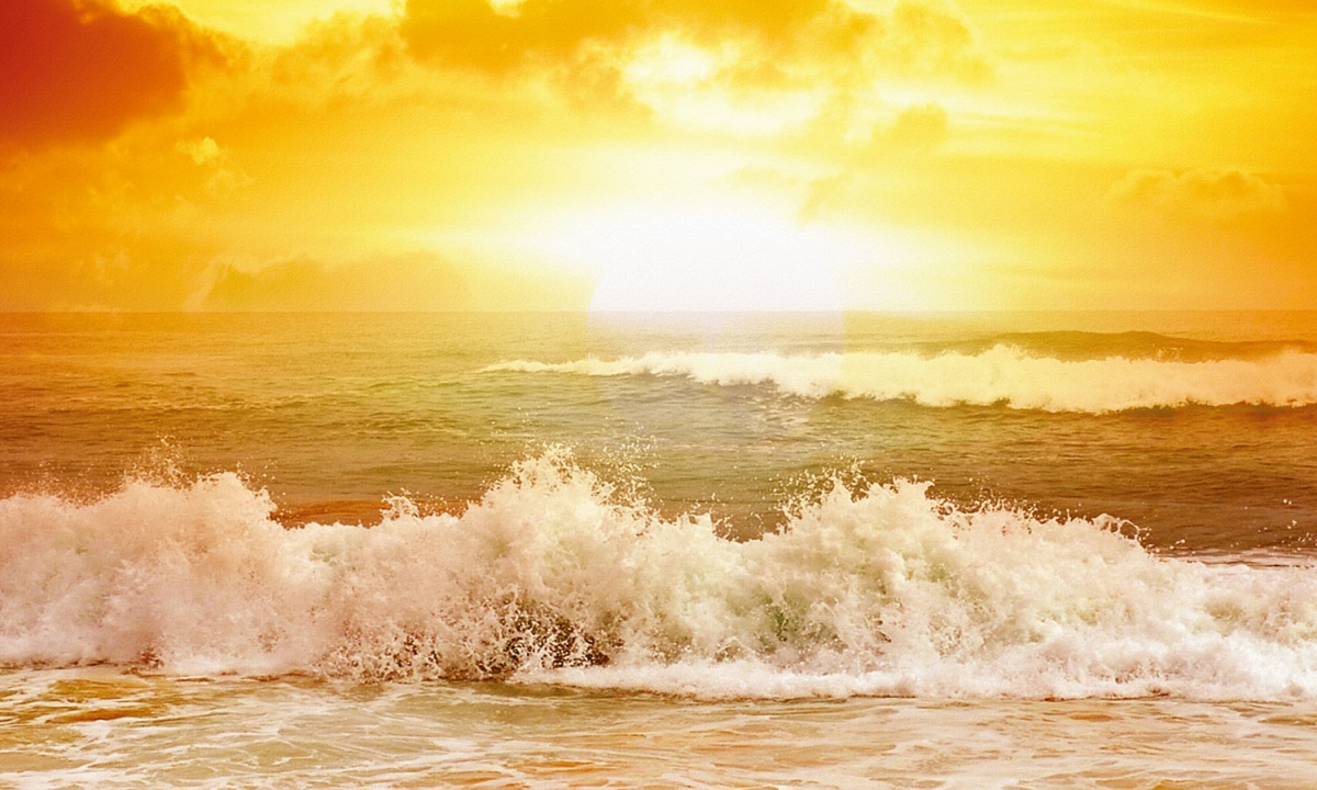 Dibond obkladová doska za kuchynskú linku Vlny v západe slnka - 100 x 60 cm