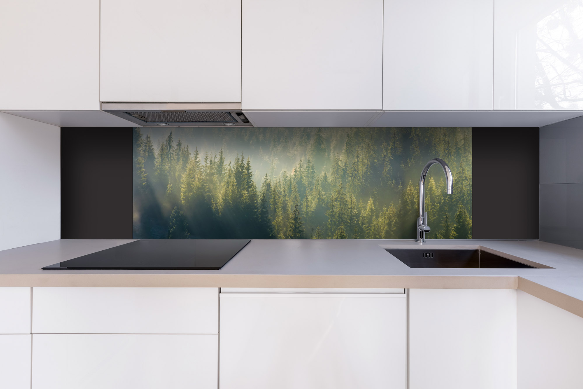 Dibond obkladová doska za kuchynskú linku Zahmlený les - 180 x 60 cm